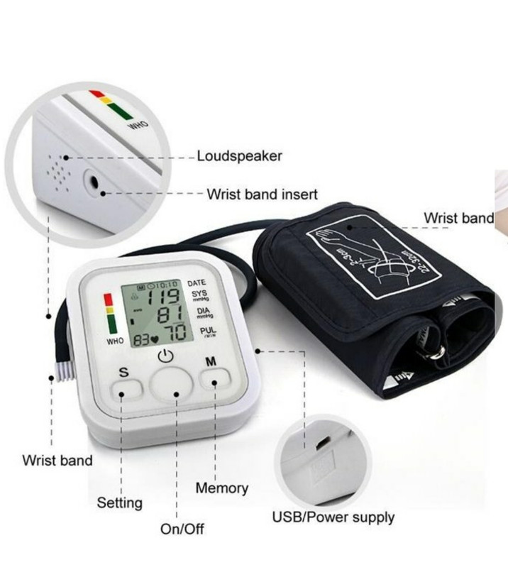 این دستگاه برای فشار خون و ضربان قلب استفاده می شود. دستگاه دارای یک صفحه نمایش LCD است که فشار خون سیستولیک و دیاستولیک و همچنین ضربان قلب را نمایش می دهد