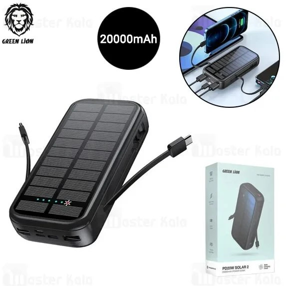 پاوربانک با باتری خورشیدی گرین لاین مدل PD20W SOLAR 2 POWER BANK 20000mAh